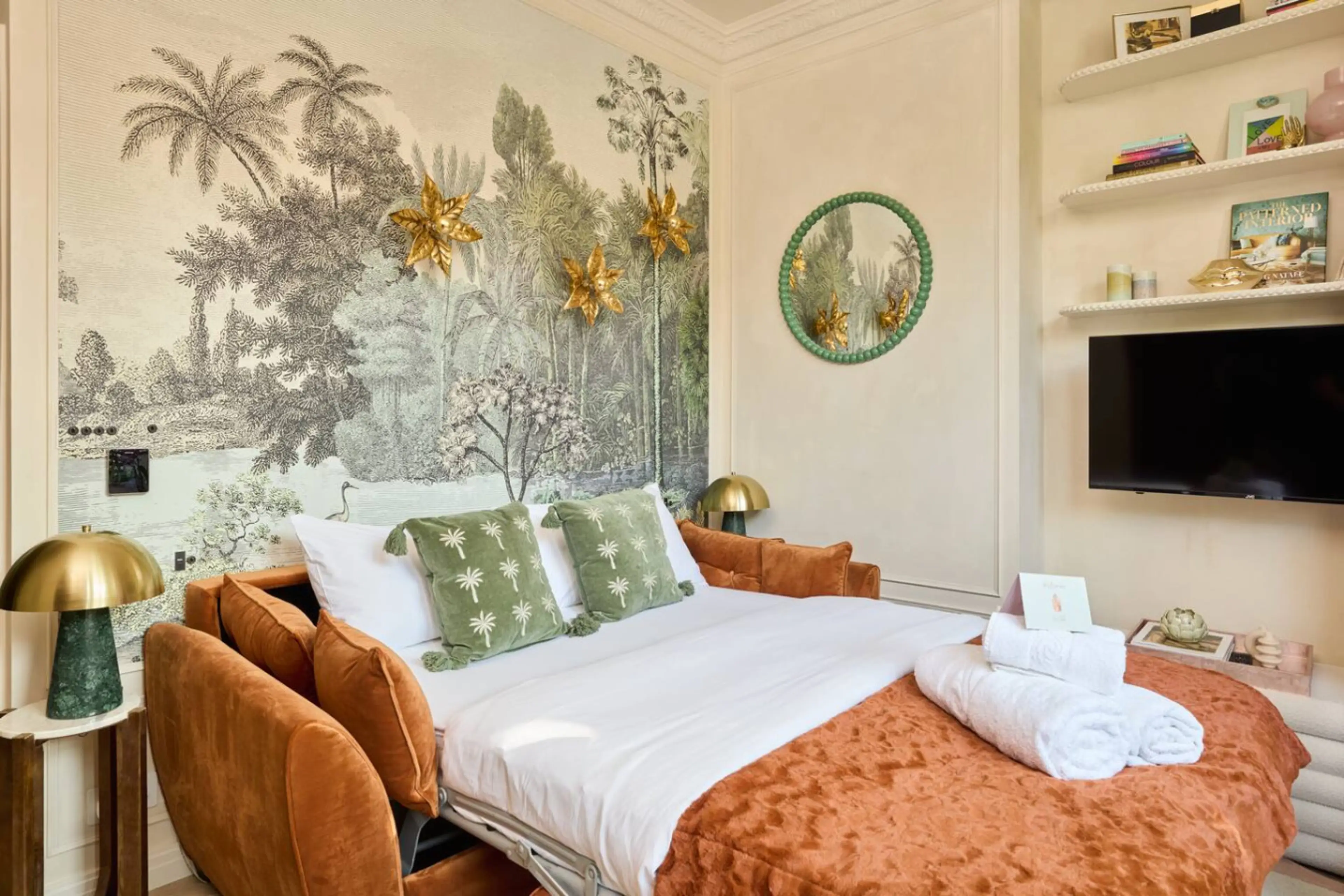 Luxe studio with a dash of Parisian chic in a classic Victorian house, on a quiet residential street in trendy Shepherds Bush, W12. Designers: Atelier Tymovski BIID / SBID. High ceilings, period features & chevron wood floor fully equipped kitchenette, green marble walk in shower & super fast wi-...